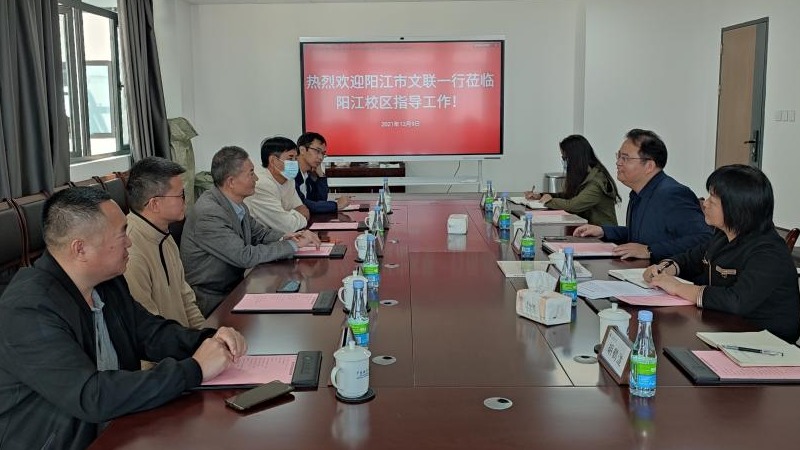 12月9日上午,阳江市文联专职副主席肖顺发,阳江市文联副主席、阳江书画院院长曾纪升一行5人来校参观并在海纳楼745开展交流座谈。座谈会由校区党委委员、管委会副主任陈永强主持,学生事务部全体成员参加了会议。