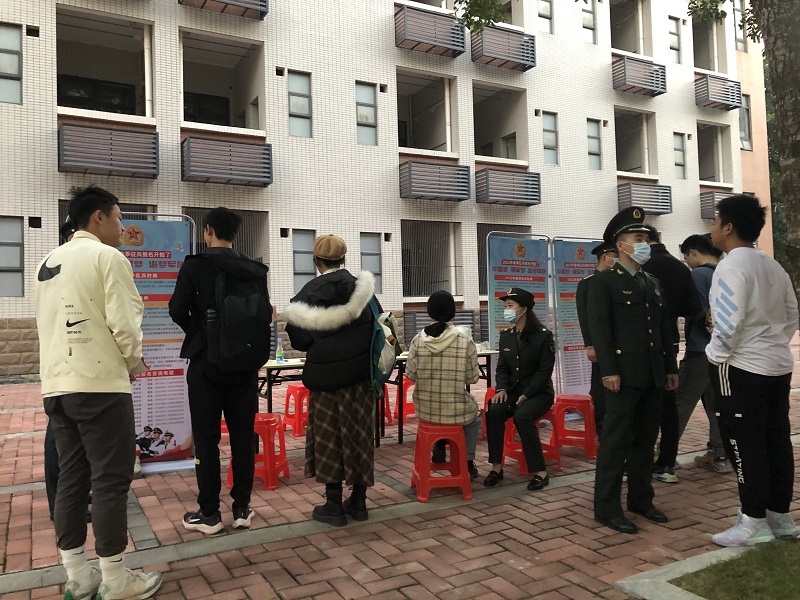 宣传现场同学们热情高涨,积极向部队官兵了解当兵入伍的流程和部队生活。宣传活动持续到晚上7点,现场有3位同学进行了征兵意愿登记和网上应征报名,至此,校区已有8位同学完成征兵意愿报名登记,接下来学校会按照征兵办公室的通知要求,于近期开展初检初考工作。