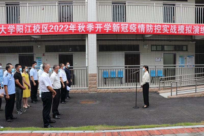 8月31日下午,阳江市副市长柯燕率市教育局、市公安局、市卫生健康局、市市场监管局、市卫生监督所等部门负责同志到欧冠区调研开学疫情防控工作并指导开学疫情防控应急演练。校区党委副书记、管委会常务副主任周昌仕,校区领导陈永强、徐兵、毛琪参加活动。校区疫情防控领导小组成员、相关单位部门负责人及各学院辅导员代表参加演练。本次演练旨在进一步提高阳江校区防范和应急处置新冠肺炎疫情的能力,有效保障2022年秋季学期顺利开学及师生健康安全。