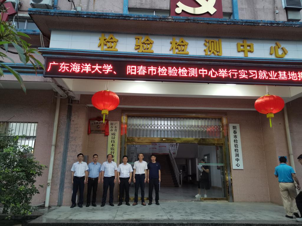 4月19日,校区食品科学与工程学院校外实习就业基地在阳春市检验检测中心举行揭牌仪式。阳江校区党委副书记丁永成、食品科学与工程学院杨新河教授、王文铎博士以及阳春市检验检测中心全体人员参加了揭牌仪式。