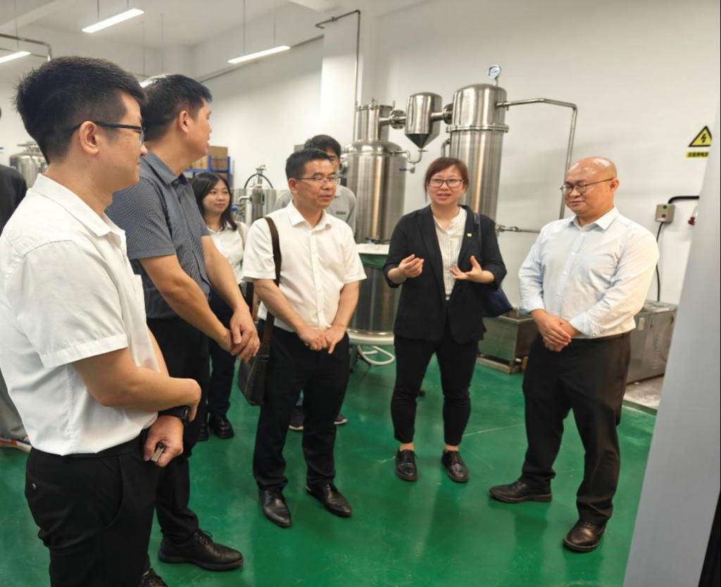 庞宗飞一行先后走访了机能学院工训中心实验室、岭南特色果蔬绿色加工产业学院和调味品加工研究室,了解研究院在科研成果产业化等方面的科研发展情况。随后,双方在海科楼404会议室进行了座谈交流,白浚宇主持会议。