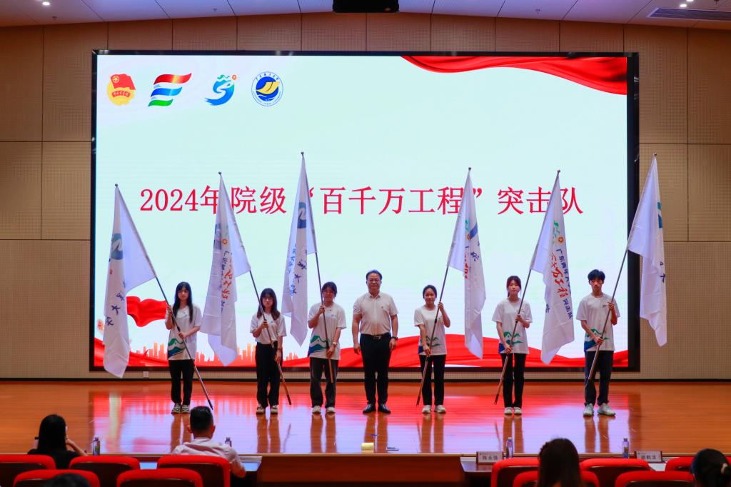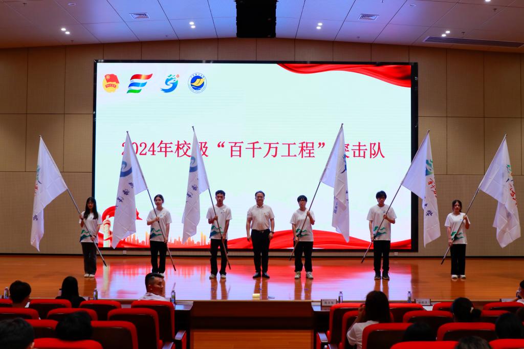 7月3日,校区团委在海纳楼113多功能厅举办阳江校区2024年暑期“三下乡”社会实践活动暨广东青年大学生“百千万工程”突击队行动出征仪式。校区党委副书记陈永强、学生事务部部长孙学甫、校区团委书记胡鹤泷、校区各学院团学负责老师以及53支社会实践团队代表出席了出征仪式。出征仪式由胡鹤泷主持。