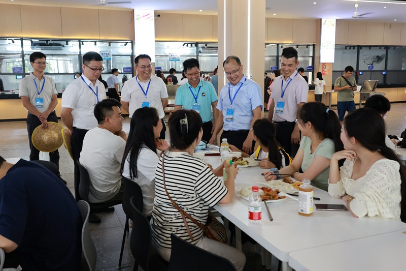 周昌仕一行走访了各个现场接待点、新生宿舍和食堂,现场指导工作,确保每一个细节都尽善尽美。他们还与报到的新生及其家长进行了深入的沟通与交流。面对新生们的兴奋与期待,周昌仕一行鼓励他们在大学生活中勇敢探索,积极融入校园,充分利用学校提供的各项资源,努力实现个人价值。同时,他们耐心解答家长们对新生入学的各类问题,为他们提供指导和支持。他们还向现场一线辛勤工作的志愿者和工作人员表示慰问与感谢,赞扬他们在迎新工作中的无私奉献和辛勤付出。