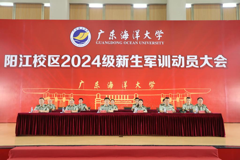 9月14日上午,阳江校区2024级新生军训动员大会在海阳馆举行。学校党委书记杨洲、武警阳江某部教官代表出席大会并作动员讲话。学校党委副书记、军训旅政治委员谭平宣读各军训营营长、教导员名单。学校党委常委、副校长、阳江校区党委书记、管理办公室主任周昌仕主持大会。各学院分管学生工作的领导、军训团成员,各学院负责带训管训和保障服务的老师,以及阳江校区全体2024级参训学生参加大会。