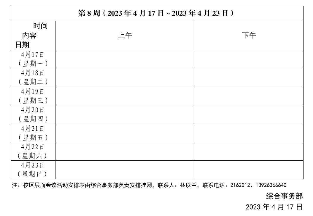 上一篇:2022~2023学年第二学期第09周会议活动安排表