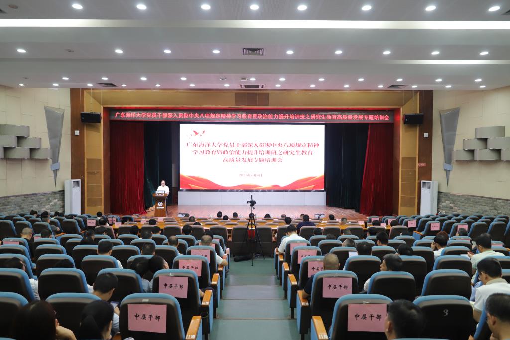 为全面提升欧冠研究生教育质量与学科建设水平,进一步探索研究生教育高质量发展的创新路径,6月4日下午,学校在湖光校区广学楼多功能厅举行全校中层干部能力提升班之研究生高质量发展专题培训会。浙江农林大学副校长徐爱俊应邀作专题报告。学校党委杨洲书记,副书记谭平,党委常委、副校长谭北平、周昌仕、鲁义善,党委常委、宣传统战部部长林宇,全校中层干部,研究生院,各学位点(方向)带头人等约150人参会。阳江校区通过企业微信线上收看。会议由周昌仕主持。